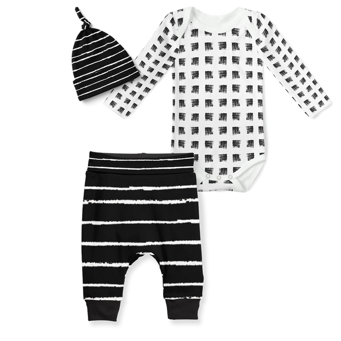 3-Piece Jogger/Onesie/Beanie Set - Smudge/ Stripe Black
