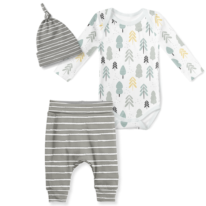 3-Piece Jogger/Onesie/Beanie Set - Forest/ Stripe Grey