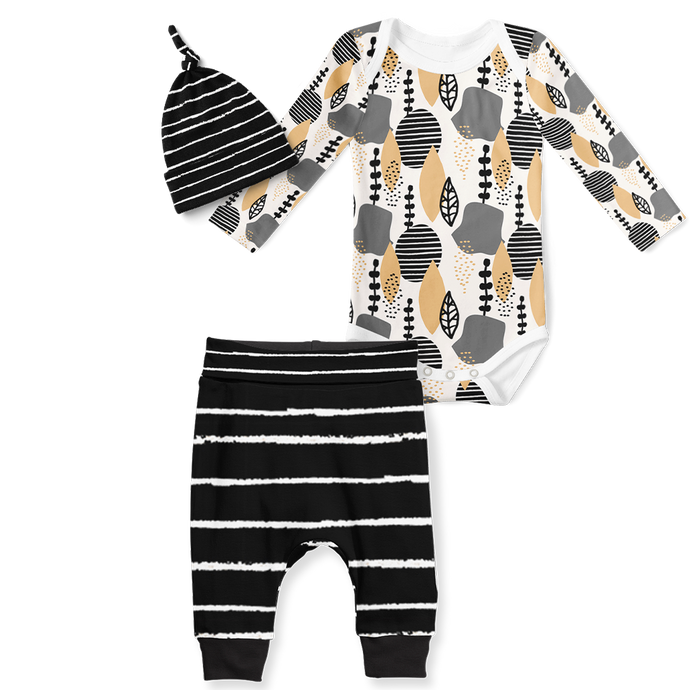 3-Piece Jogger/Onesie/Beanie Set - Abstraction/Stripe Black