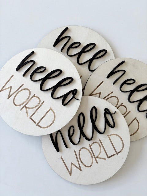 . Hello World Large engraved Wooden disc