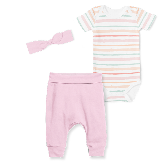 3-Piece Jogger/Onesie/Headband Set - Candy Stripes / pink